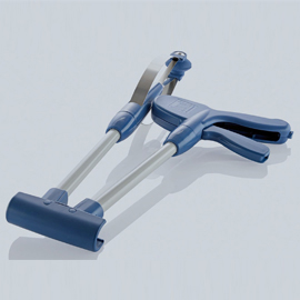 Aus epX-Textilmaterial mit J-förmiger Pelotte lateral und unterhalb der Patella sowie zweigeteiltem Patella-Führungsgurt und je zwei seitlichen Federstäben.